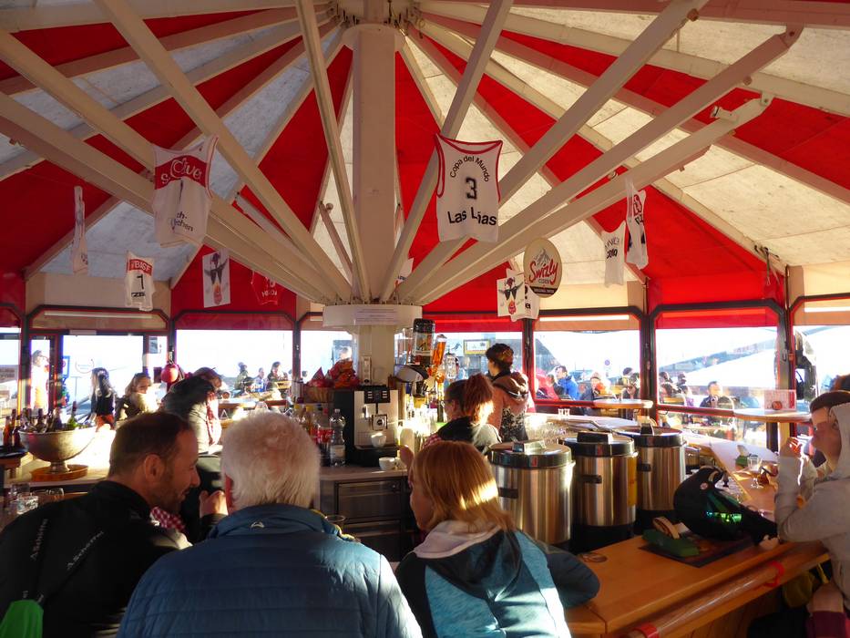 Bij de Funibar laat je de skidag in een stijlvolle sfeer uitklinken. De laatste zonnestralen kun je in de ligstoelen genieten. Daarna moet je echter nog de dalafdaling maken.