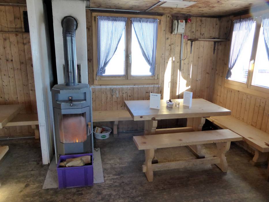 De gezellige en authentieke berghut maakt indruk met haar prachtige panorama. Bij mooi weer staan er ligstoelen klaar en op koude dagen zorgt een open haard voor warmte in de knusse stube. Voor de kleine trek zijn er diverse snacks verkrijgbaar.