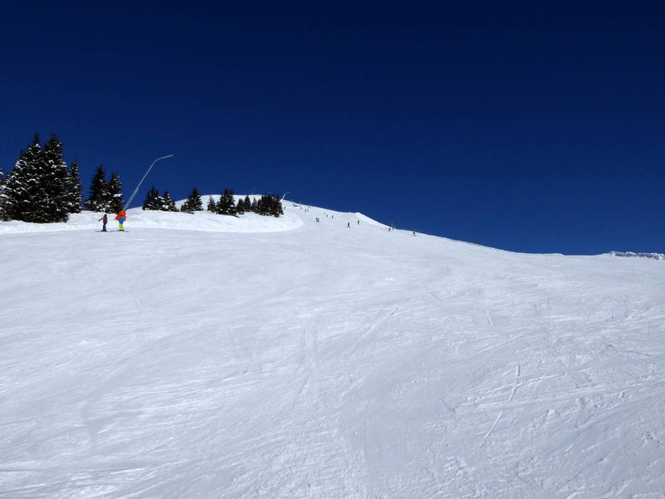 De skiroute Pfeifferköpfl loopt onder de gelijknamige lift richting het dal.