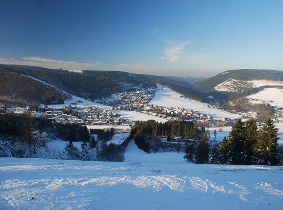 De ruim 1,5 kilometer lange besneeuwde piste rechts naast de K-1 Köhlerhagenbahn is misschien wel de mooiste piste van het Sauerland – en trouwens ook de favoriet van de Willinger langlauflegende Jochen Behle.
