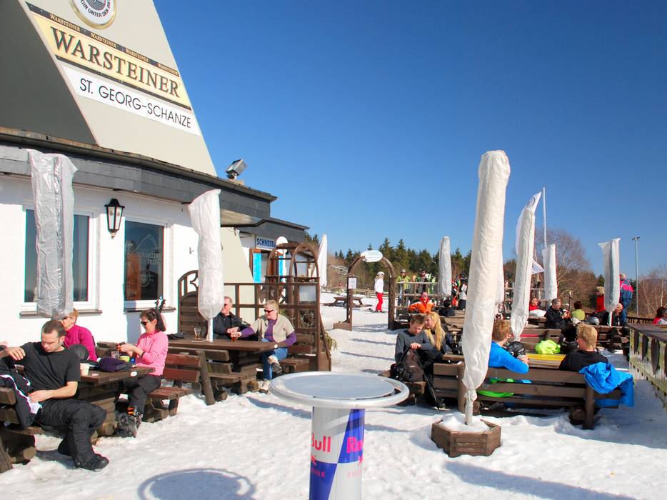 Schitterende ligging direct naast de aanlooptoren van de markante St. Georg Schanze op de top van de Herrloh. Zeer rustiek ingericht bedieningsrestaurant met 100 zitplaatsen en een groot, zuidelijk gelegen zonneterras, een populair doel voor veel wandelaars uit Winterberg.