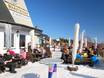De over het hele skigebied verspreide skihutten bieden overwegend eenvoudige snacks (friet, schnitzel, braadworst, erwtensoep, spaghetti en voor de Nederlandse gasten natuurlijk frikandel) in een rustieke sfeer. Het zelfbedieningsconcept overheerst en zorgt gegarandeerd voor langere wachttijden. Tijdens de piekuren is het vaak erg druk en de overheersende geur is die van frituurvet. De apfelstrudel wordt soms in de magnetron opgewarmd en is dan wat slap. Over het algemeen valt er echter weinig aan te merken op de kwaliteit en smaak van het eten. Positief is ook het algemeen lage prijsniveau. Een extra pluspunt is dat de toiletten meestal zonder trappen bereikbaar zijn.