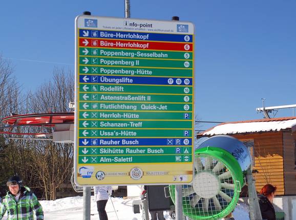 Het Winterberger Skiliftkarussell is waarschijnlijk een van de weinige middelgebergte-skigebieden waar het voorkomt dat skiërs ’s avonds hun parkeerplaats niet meer kunnen vinden waar ze hun auto hebben neergezet. De bewegwijzering van het skigebied is echter enkele jaren geleden volledig vernieuwd en verkeert nu in goede staat. Bij de bergstations zijn borden te vinden met wegwijzers naar liften, hutten en parkeerplaatsen. Panoramaborden zijn echter slechts op enkele plekken in het skigebied te vinden. Deze hebben dan wel een dynamische weergave van de liftstatus.