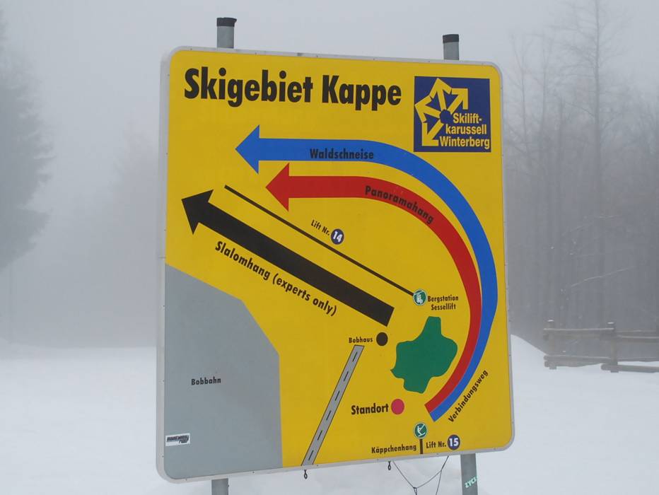 Oriëntatie (pistekaart, informatieborden, bewegwijzering piste) en veiligheid in het skigebied Winterberg (Skiliftkarussell)