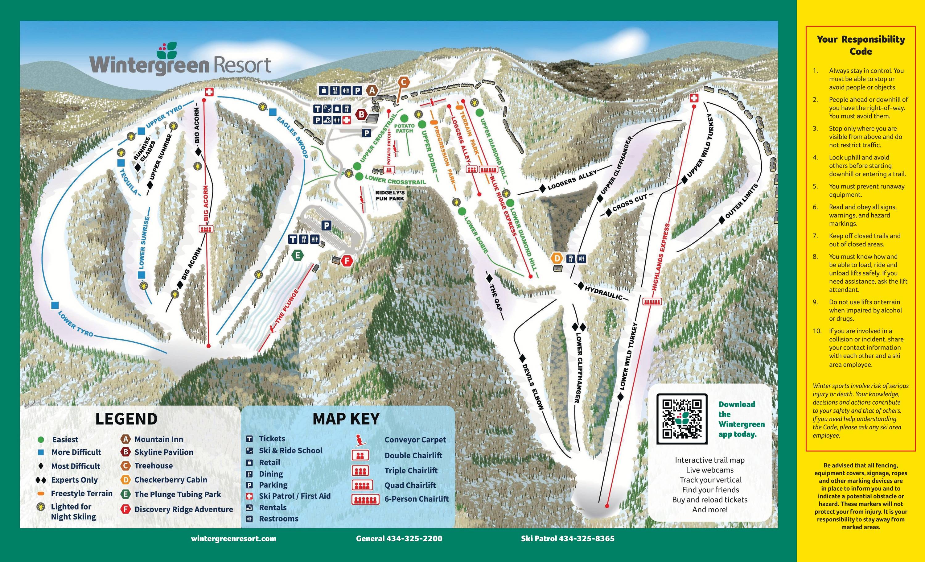 Pistekaart Wintergreen Resort seizoen 2024/2025