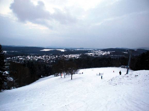 Het skigebied heeft weliswaar slechts het formaat van een grotere skihal, maar scoort met relatief gevarieerd terrein en het uitzicht eindigt niet bij een foto aan de halwand, maar reikt ver over het Siegtal.