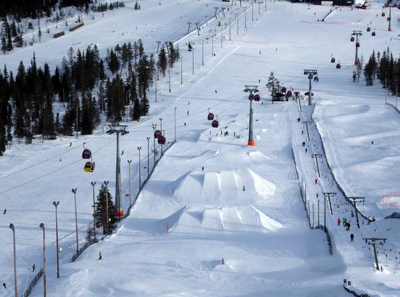 In het skigebied Ylläs wachten meerdere snowparks aan beide zijden van de top Yllästunturi in de dalgebieden op freestylers en snowboarders.