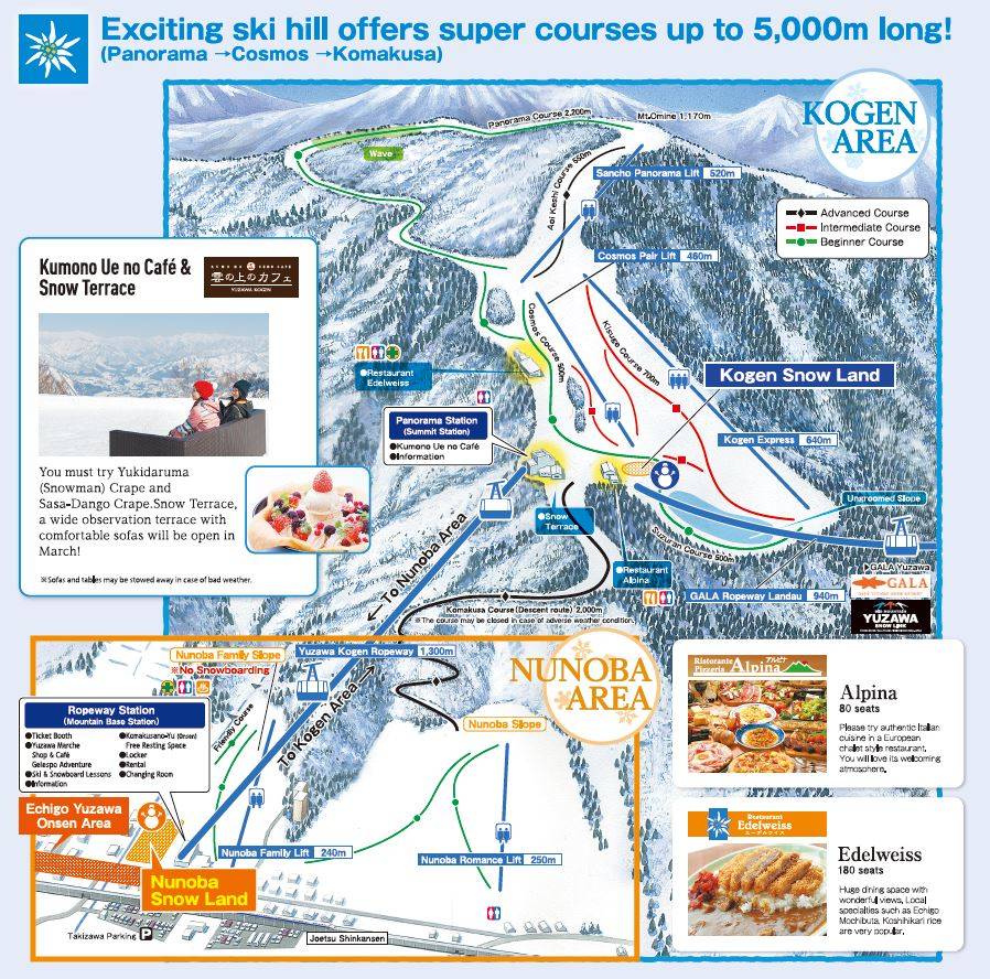 Pistekaart Yuzawa Kogen seizoen 2024/2025
