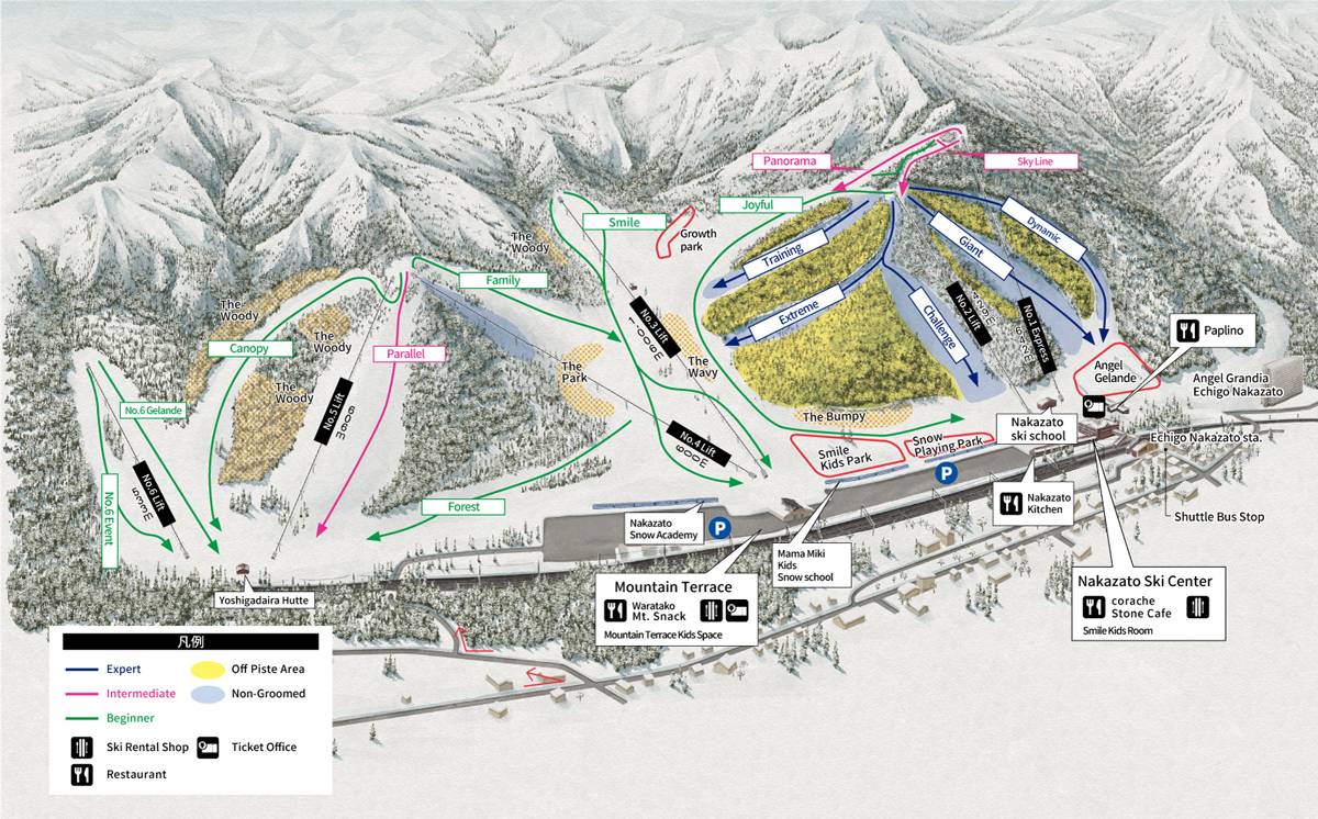 Pistekaart Yuzawa Nakazato seizoen 2024/2025
