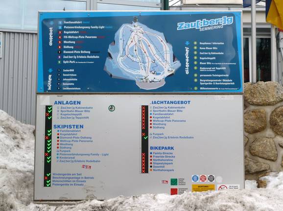 Oriëntatie (pistekaart, informatieborden, bewegwijzering piste) en veiligheid in het skigebied Zauberberg Semmering