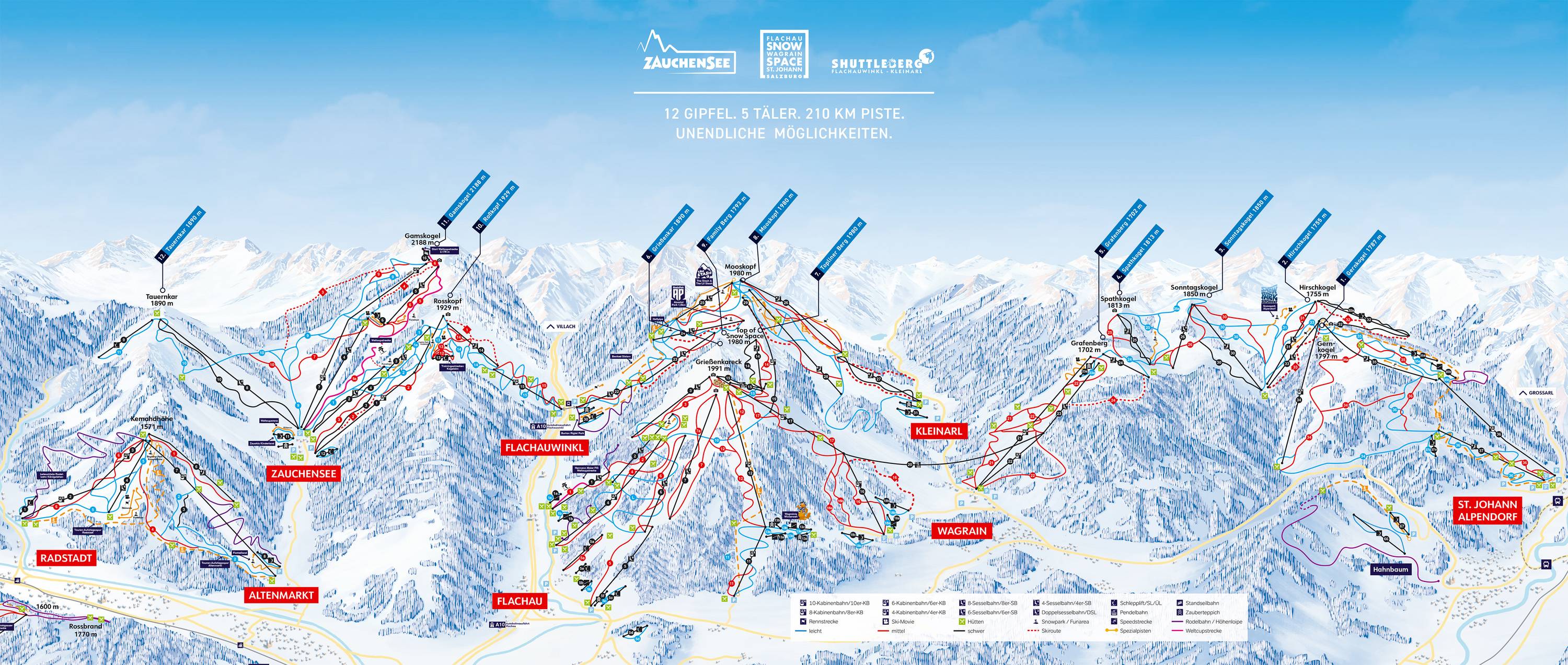 Pistekaart van het skigebied Zauchensee/​Flachauwinkl