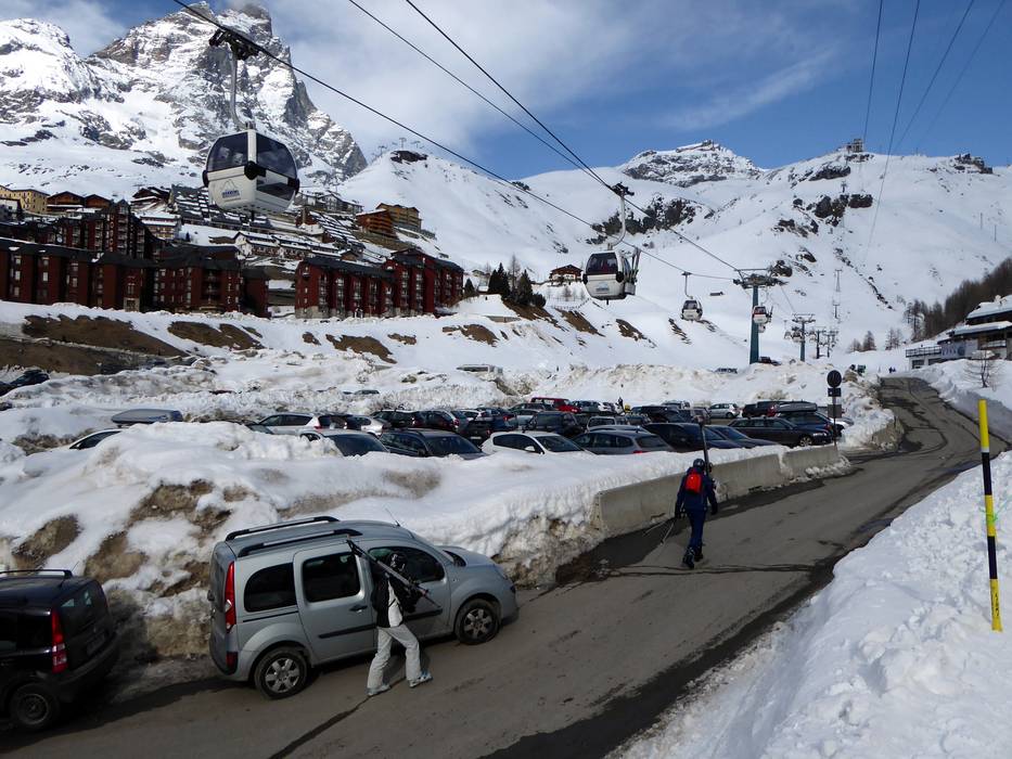 De reis naar het skigebied verloopt ofwel via Zermatt (Zwitserland) of via Breuil-Cervinia of Valtournenche (Italië).Zermatt ligt in Wallis, in het zuidwesten van Zwitserland. De toegang tot Zermatt is alleen mogelijk per trein, omdat het dorp autovrij is. Je parkeert in Täsch in de betaalde parkeergarage (2100 plaatsen) en stapt daar over op de trein. In de parkeergarage zijn inmiddels 131 parkeerplaatsen met laadstations voor elektrische auto's (Zwitserse record in een openbare parkeergarage, met een geleidingssysteem met groene/rode lampjes (vrij/bezet)). Moderne pendeltreinen rijden elke 20 minuten naar Zermatt. De reistijd bedraagt 12 minuten. Bij het station in Zermatt word je door de verhuurder of het hotel met elektrische voertuigen opgehaald en direct naar de accommodatie gebracht.