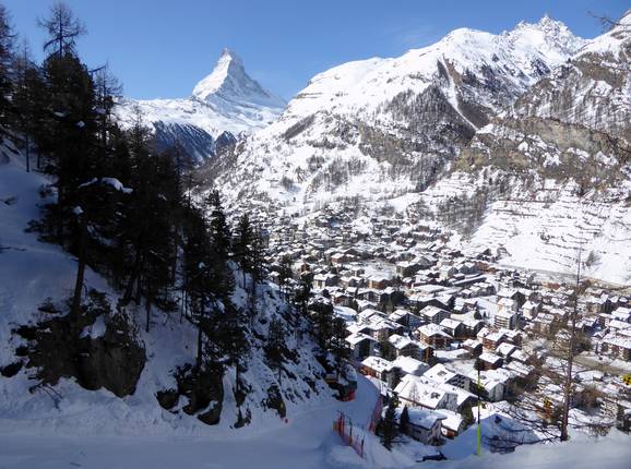 Zermatt ligt op 1620 m en er zijn tal van accommodaties beschikbaar, van eenvoudige pensions tot luxe 5-sterrenhotels. Het Walliser dorp is autovrij en men maakt gebruik van elektrische skibussen naar de skiliften. Direct in het skigebied kun je overnachten in Hotel Riffelhaus, de Ganegghütte, het Kulmhotel Gornergrat, het Riffelalp Resort (het hoogste 5-sterrenhotel van Europa op 2222 m), Hotel Silvana of Hotel Schwarzsee. Wie het extra romantisch wil, kan overnachten in het Iglu-Dorf Zermatt onder de Gornergrat.