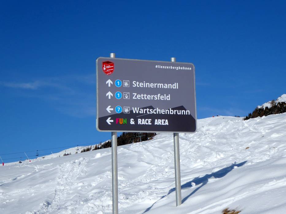 Oriëntatie (pistekaart, informatieborden, bewegwijzering piste) en veiligheid in het skigebied Zettersfeld – Lienz