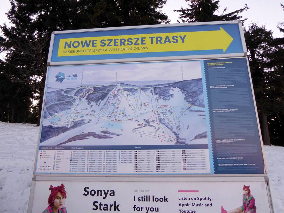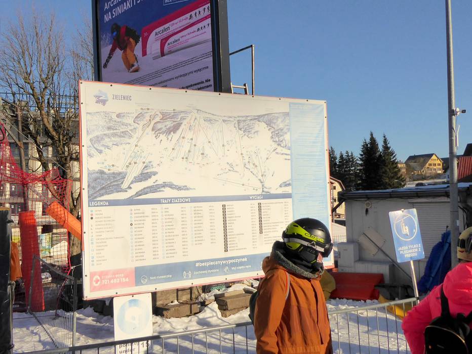 Op alle belangrijke punten in het skigebied Zieleniec zijn overzichtelijke pistekaarten beschikbaar ter oriëntatie. De afdalingen zijn grotendeels goed aangegeven en maken de navigatie in het gebied gemakkelijker. Actuele bedrijfsinformatie, zoals over geopende liften en pistes, is echter uitsluitend via de website beschikbaar.