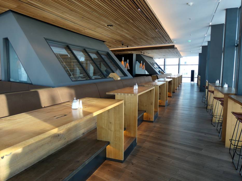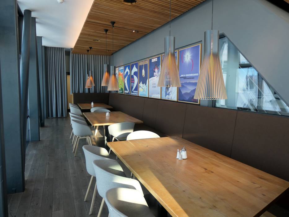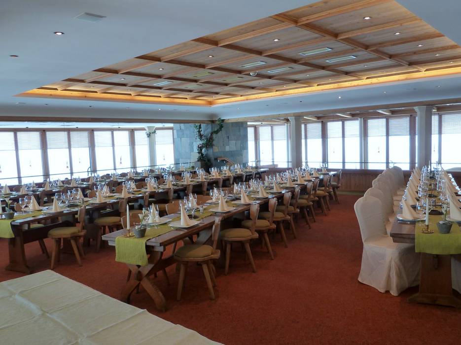 Het Panorama Gipfelrestaurant aan de Oostenrijkse kant van de Zugspitze biedt in een rustiek en gezellig ambiance hoogwaardige gerechten en dranken.